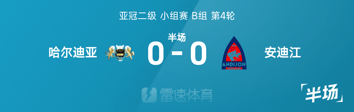 6686体育平台11月06日讯 25/26赛季亚冠二级分组赛B组第4轮,哈尔迪亚迎战安迪江。半场战罢,双方赛果分暂为哈尔迪亚0-0安迪江。