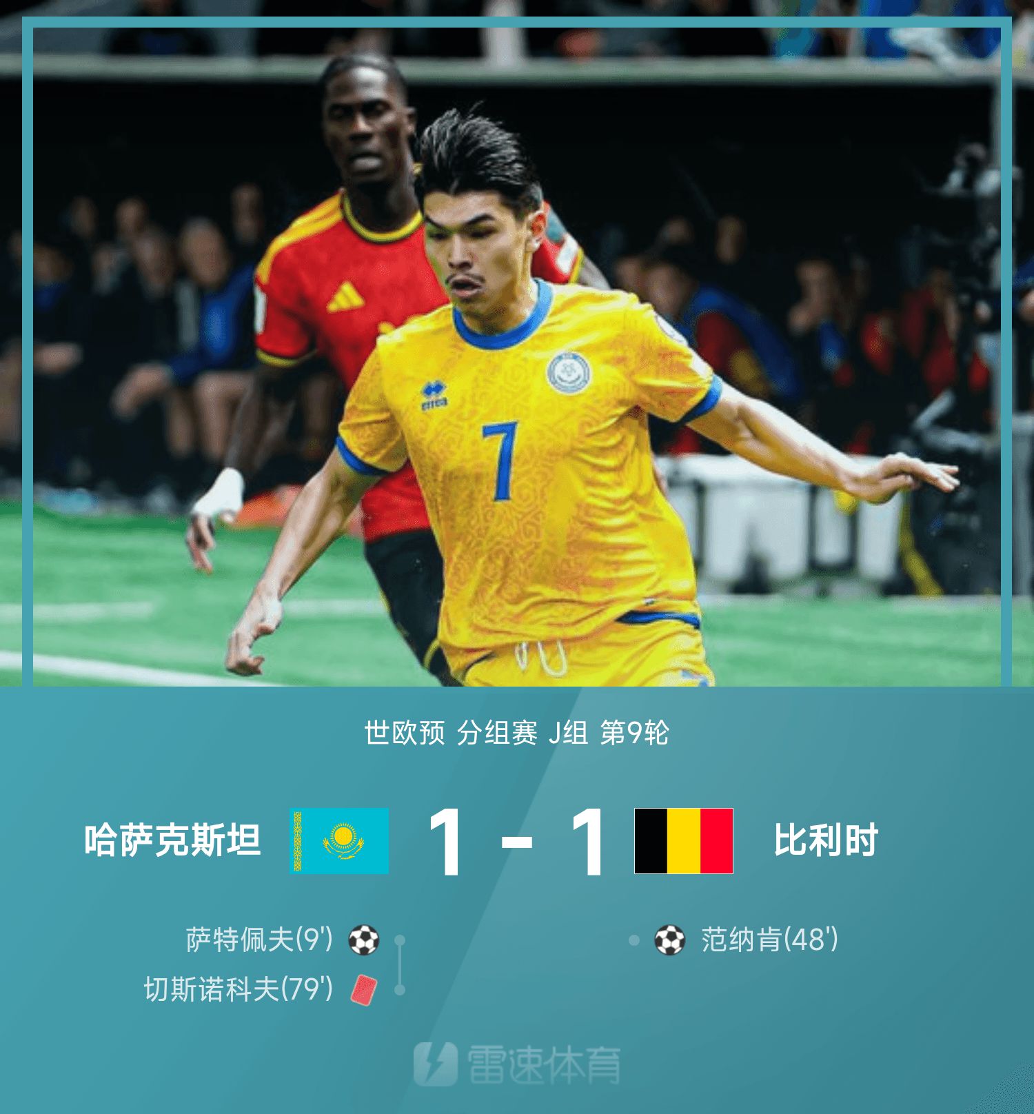 世欧预战报:比利时1-1十人哈萨克斯坦,无缘提前晋级