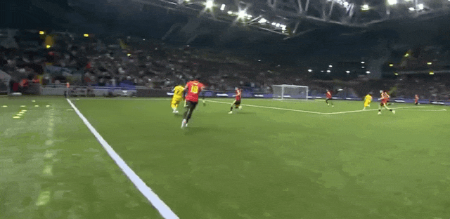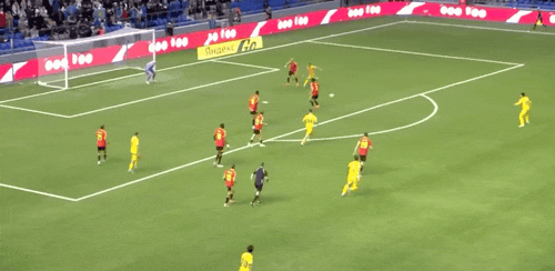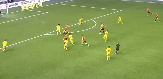 5’特罗萨德定位球开出,萨莫罗多夫清球,皮球险些坠入自家大门