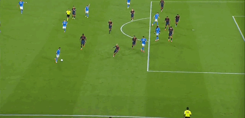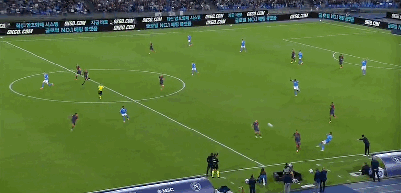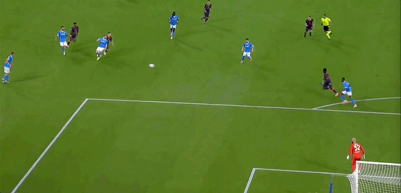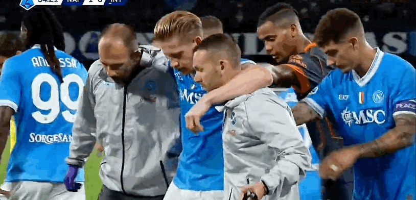 那不勒斯首发阵容:32-萨维奇、5-小胡安、37-斯皮纳佐拉(90’3-古铁雷斯)、22-迪洛伦佐、4-布翁焦尔诺(90’31-别克马)、11-德布劳内(37’17-奥利维拉)、21-波利塔诺(82’20-埃尔马斯)、99-安古伊萨、8-麦克托米奈、6-吉尔莫、7-内雷斯(81’70-朗)