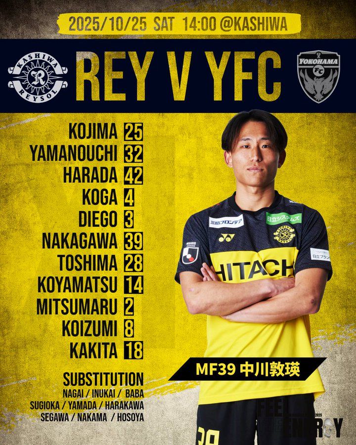 6686体育平台10月25日讯 日职联第35轮,柏太阳神主队场对阵横滨FC。赛前,双方公布首发名单。