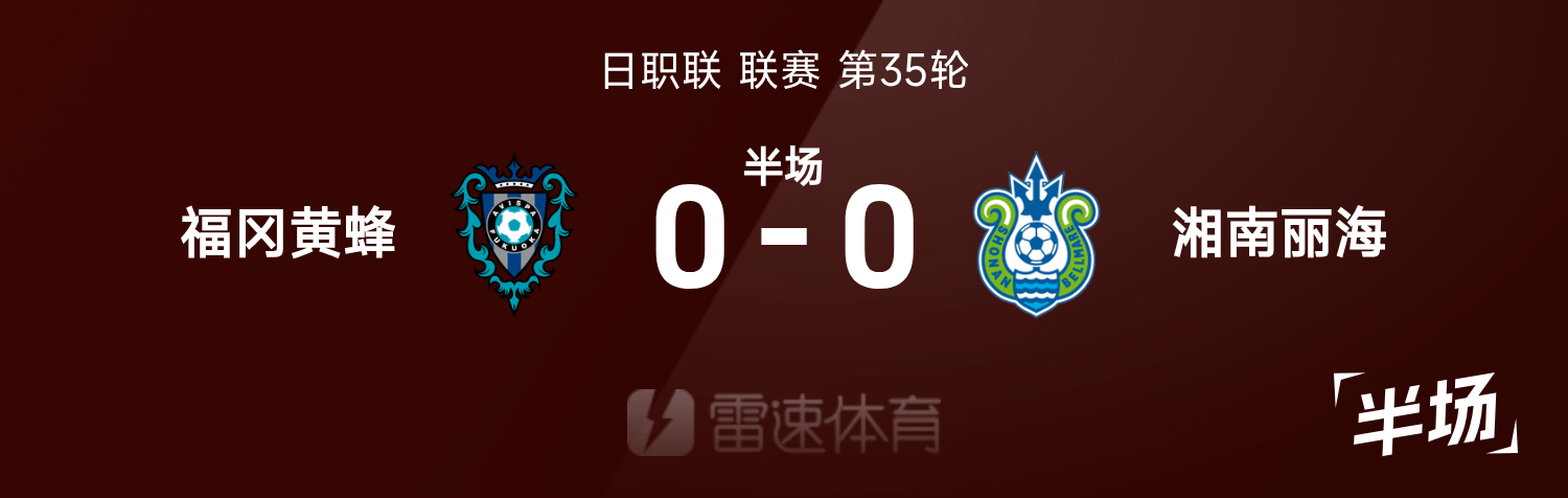 日职联半场:暴雨侵袭,福冈黄蜂0-0湘南丽海