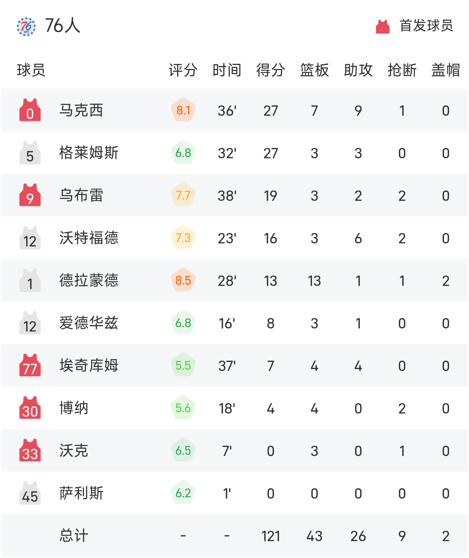 NBA战报:米切尔46分8助,骑士132-121击败76人