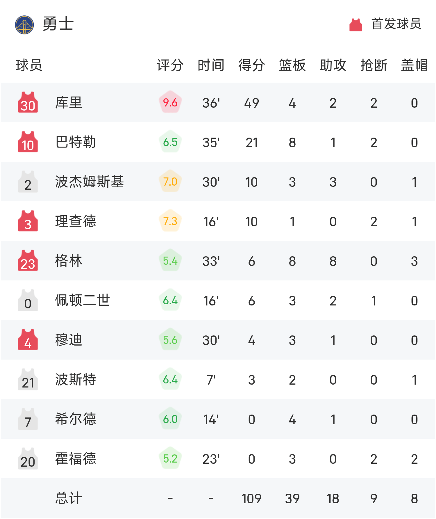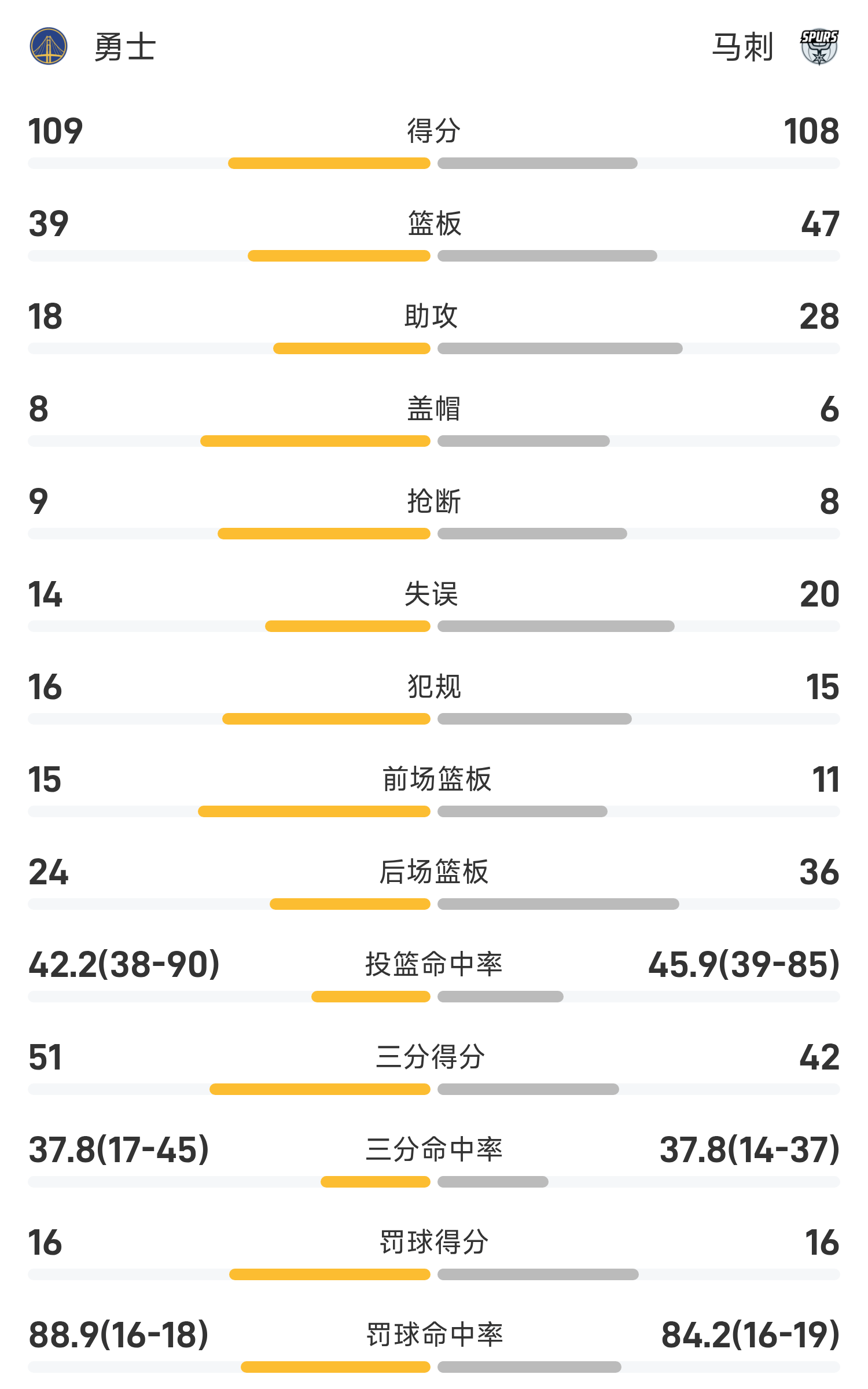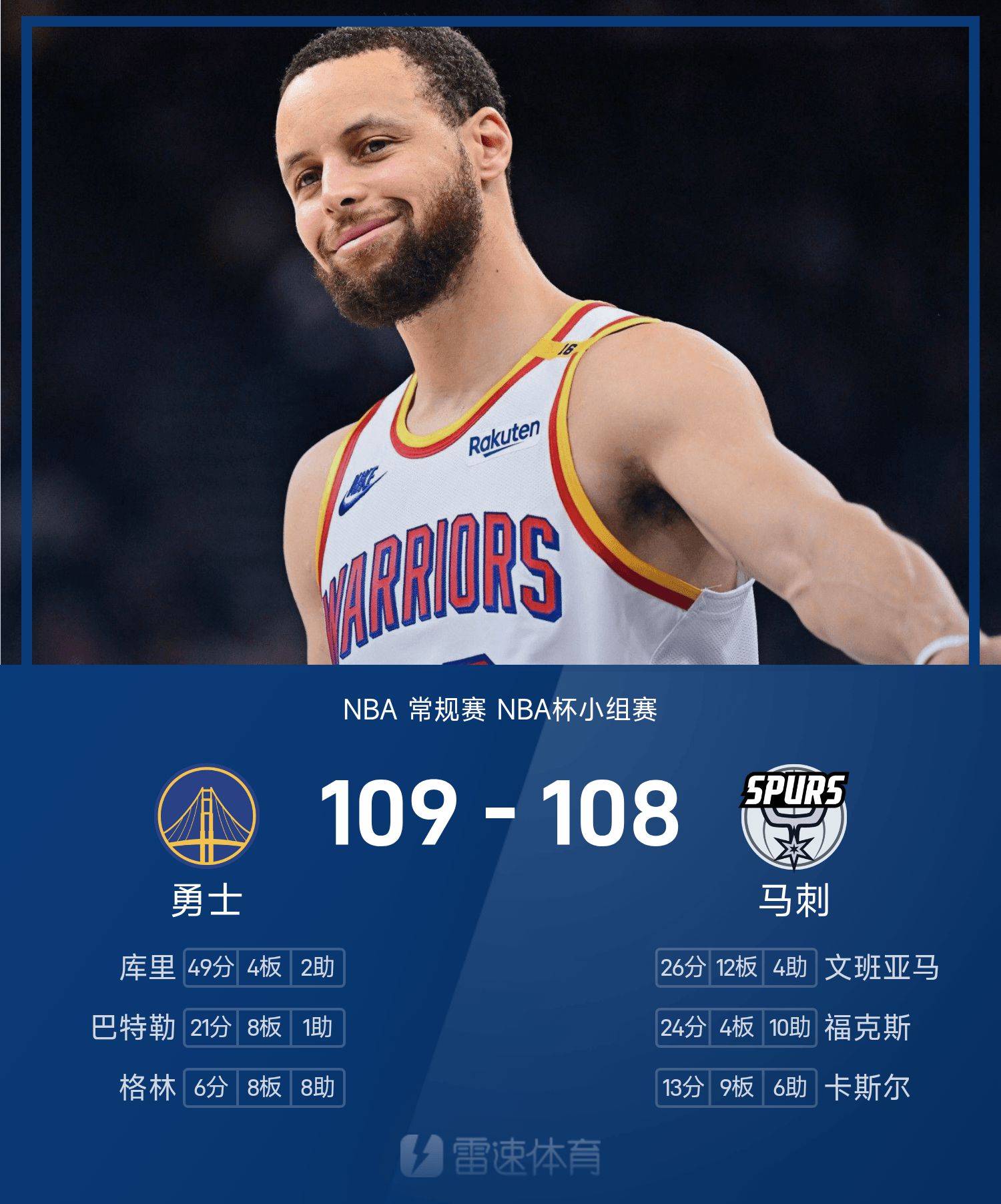 NBA杯战报:库里49分赛季新高,勇士109-108险胜马刺
