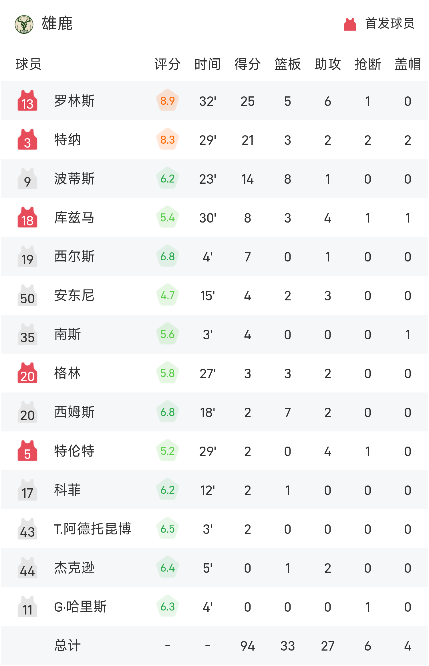 双方全场战罢,黄蜂111-100战胜雄鹿。