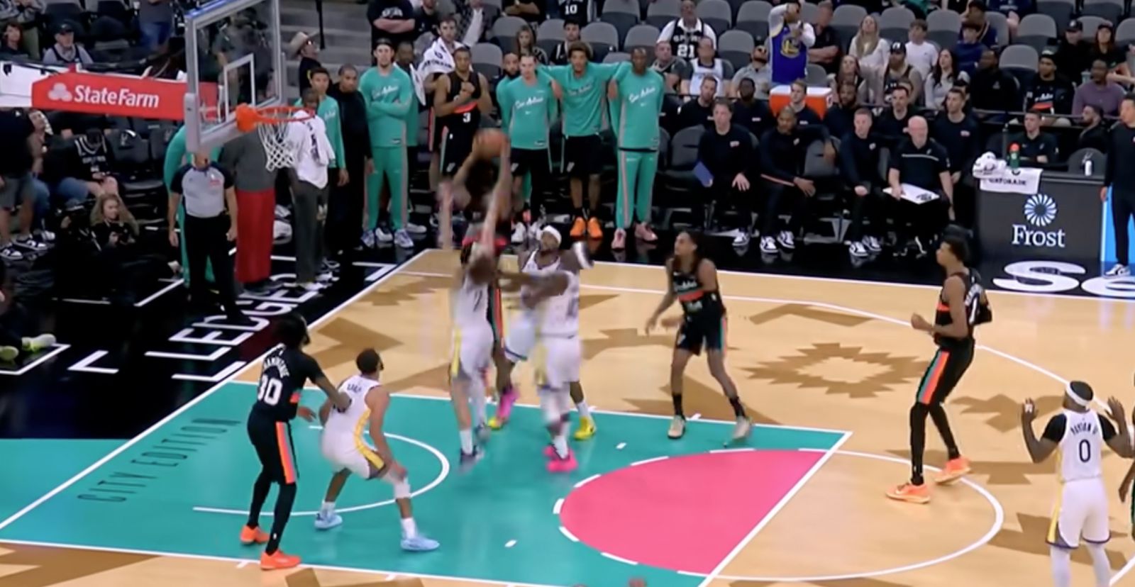 值得一提的是,竞赛最后2.1秒,穆迪被战略违例,两罚全进将分差扩展到7分的情况下,文班亚马并未选择放弃竞赛,而是直接迅速发球,大脚传给前场快下的卡斯尔,后者中投得手,文班收获了个人第10次助攻,就此达成了三双。