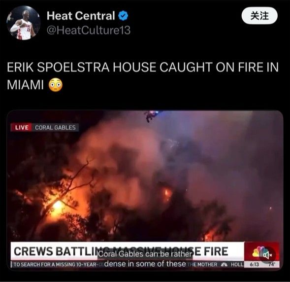 6686体育平台11月6日讯 今日,据美媒Heat Central报道,热火主帅斯波尔斯特拉家中突发严重火灾,NBC在报道中可以确定这就是这位名帅的家。
