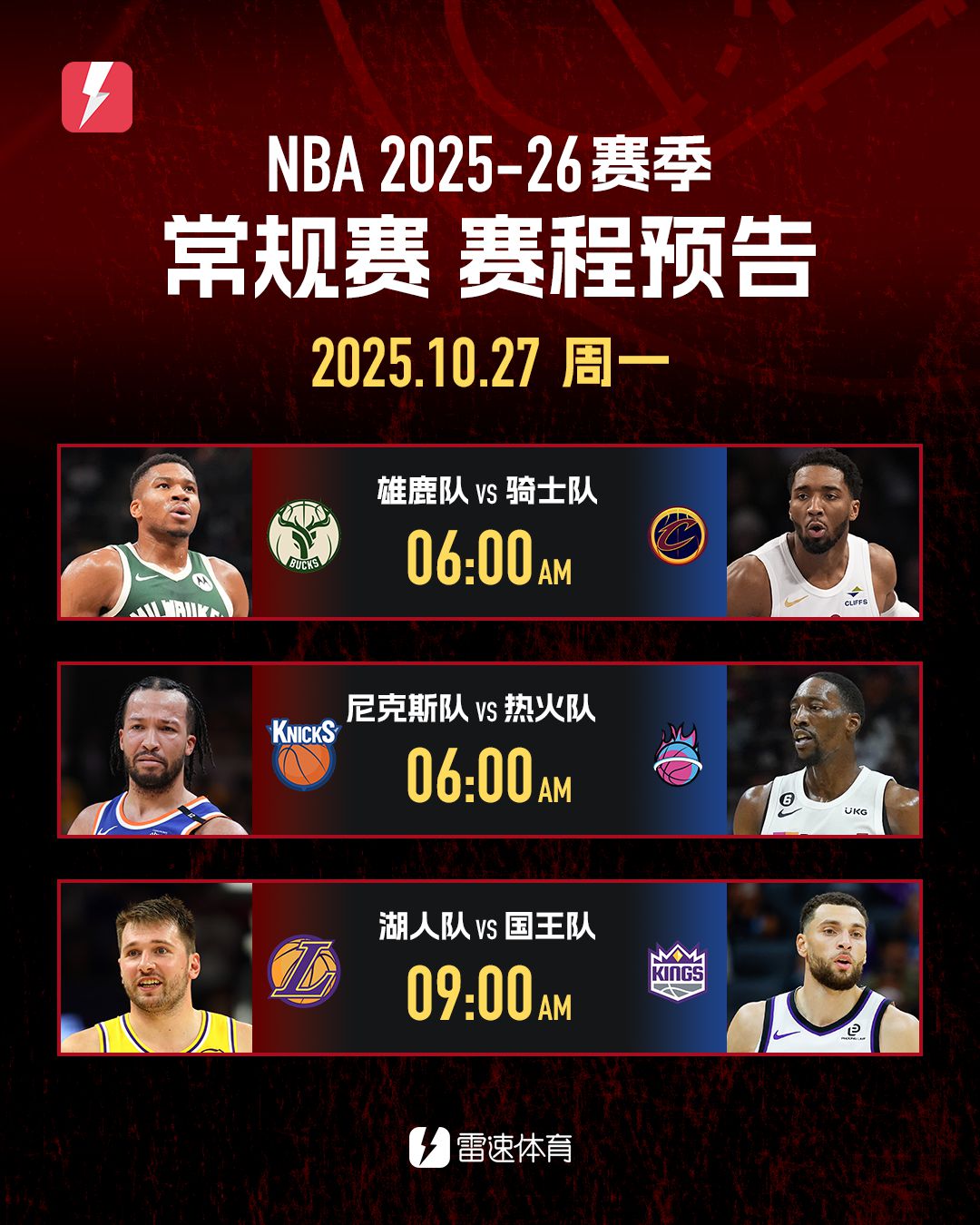 6686体育平台10月26日讯 明日进行的NBA常规赛,九场竞赛同日开打,除了万众瞩目的开拓者挑战快船外,仍有不少精彩竞赛值得我们共同关注。